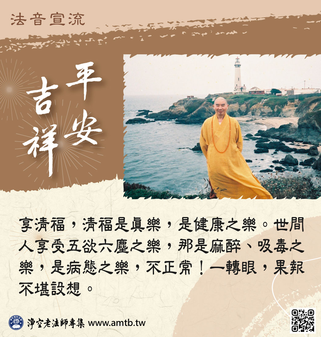 ◎ 真正念佛人的生活表現,決定是「看破、放下、自在、隨緣」。看破是對於世出世間一切理事、因果清楚明白。放下是心裡面對於世出世間法,一絲毫都不沾染;不是事情不做,事情照做,做得比別人還要積極、還要好,而心地清淨絲毫不染著。這是菩薩行。能夠將之落實是真修行,能夠理解明白是真智慧。(990417早餐)