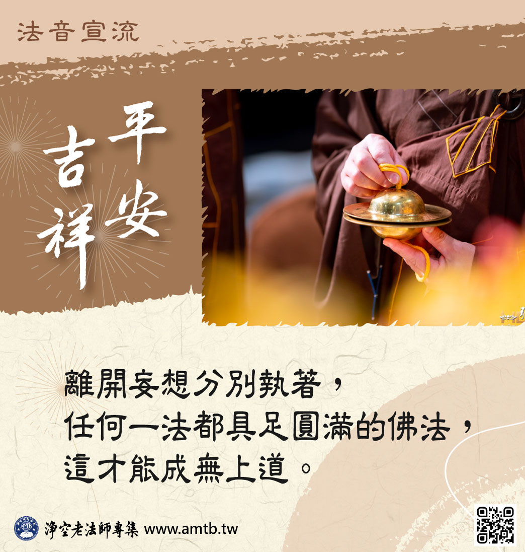 ◎ 世間人修淨,淨不是禪,禪不是戒,戒不是密,劃分得這麼清楚,所以始終不得其門而入。無論修學哪個法門,都不能成就,心都不清淨,清淨平等覺始終得不到。離開妄想分別執著,無論修學哪個法門,清淨平等覺都得到。清淨平等覺就是無上正等正覺,就是究竟圓滿的大菩提、大涅槃。(990422早餐)