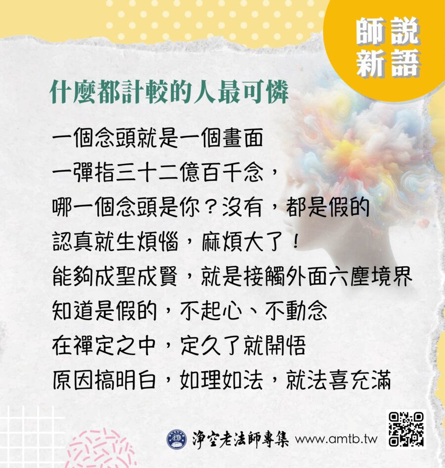 佛告訴我們,「凡所有相,皆是虛妄」,所以對於世間一切事、一切物不要認真,佛教⋯⋯