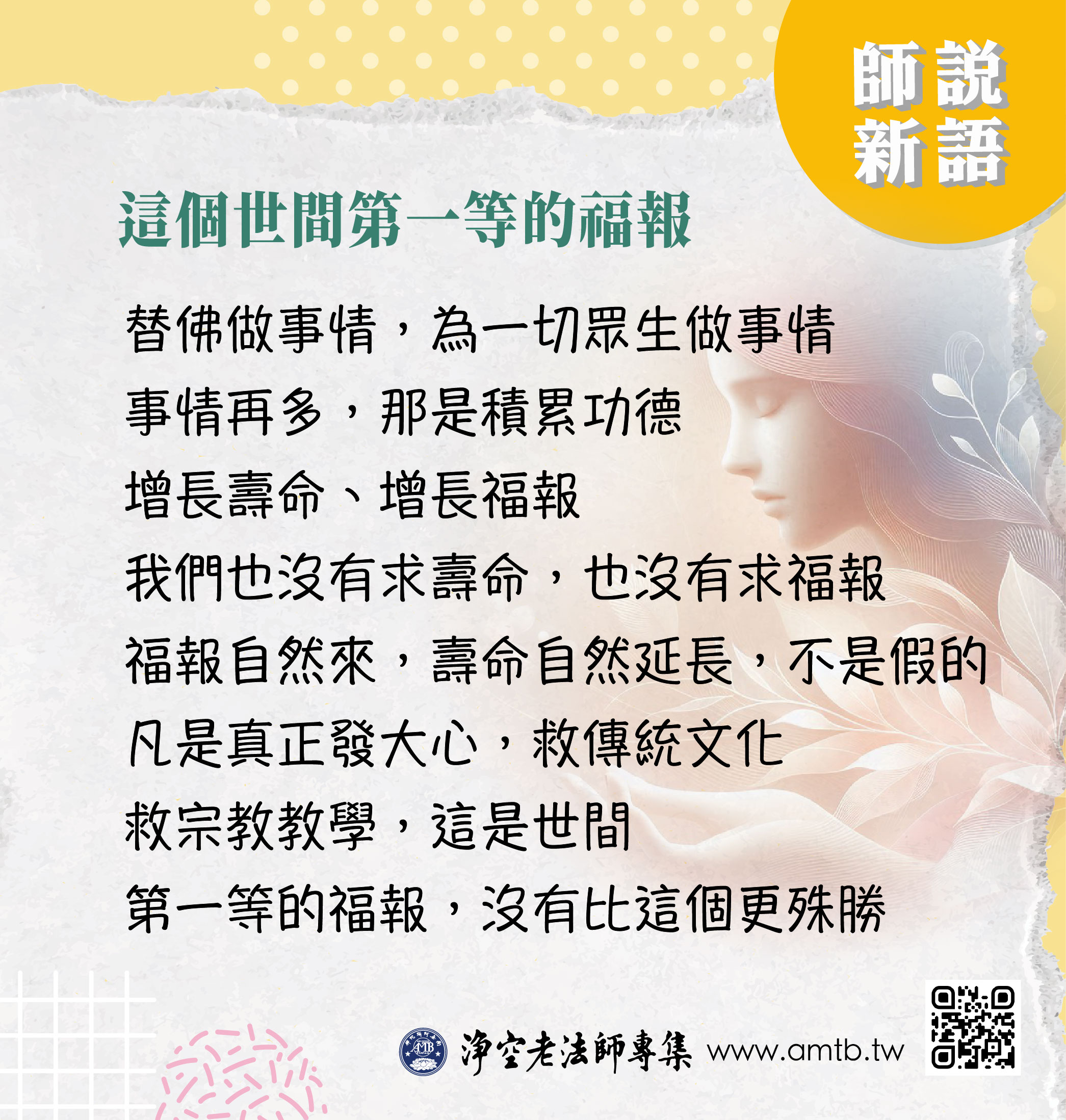 我替佛做事情,我為一切眾生做事情,事情再多,那是積累功德、增長壽命、增長福報⋯⋯